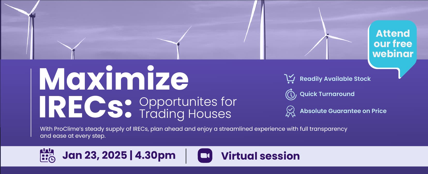 Are you a trading house looking to upgrade your IREC strategy? Attend our free webinar on and discover how ProClime can help you streamline your IREC trading experience. With ProClime's readily available stock, quick turnaround, and absolute guarantee on price, you can plan ahead and enjoy full transparency and ease at every step.